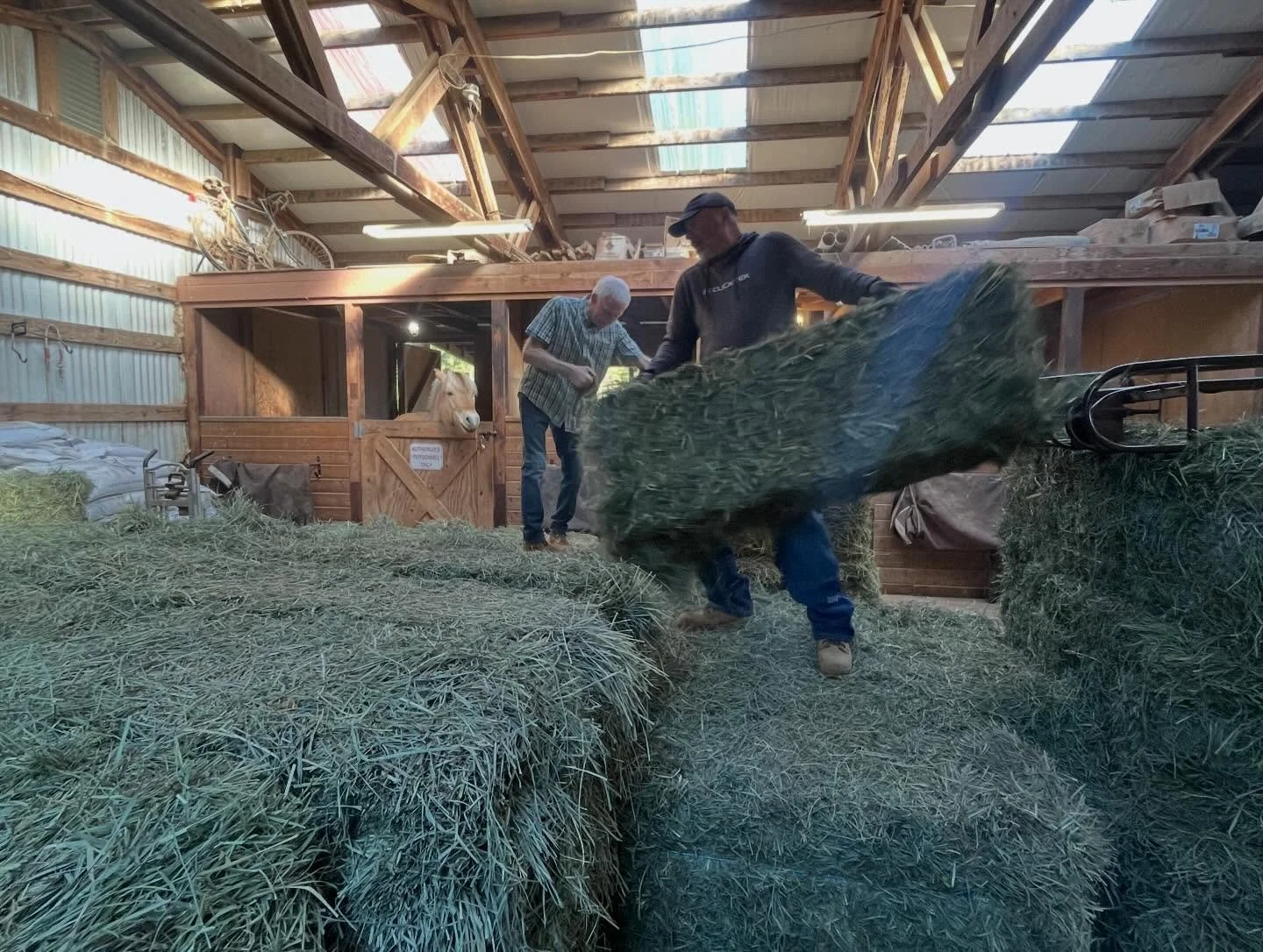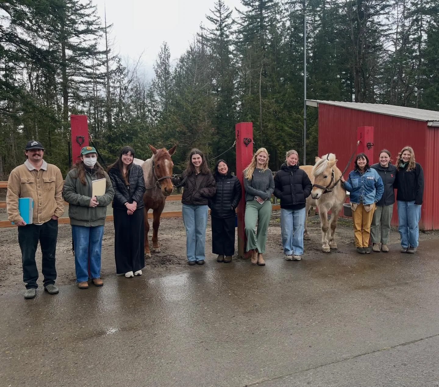 Filling up the barn with high-quality hay to keep our horses nourished and healthy. WWU students visiting and learning more about NWTRC programs.