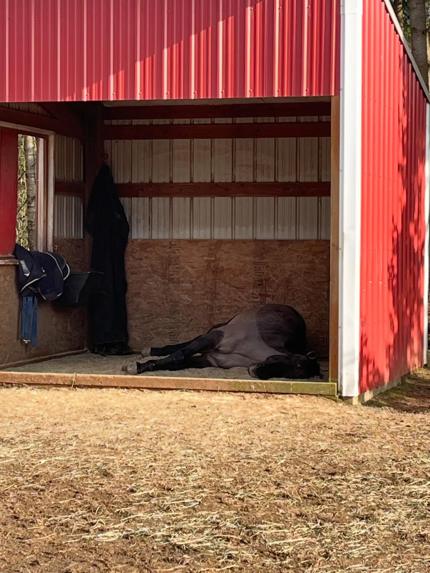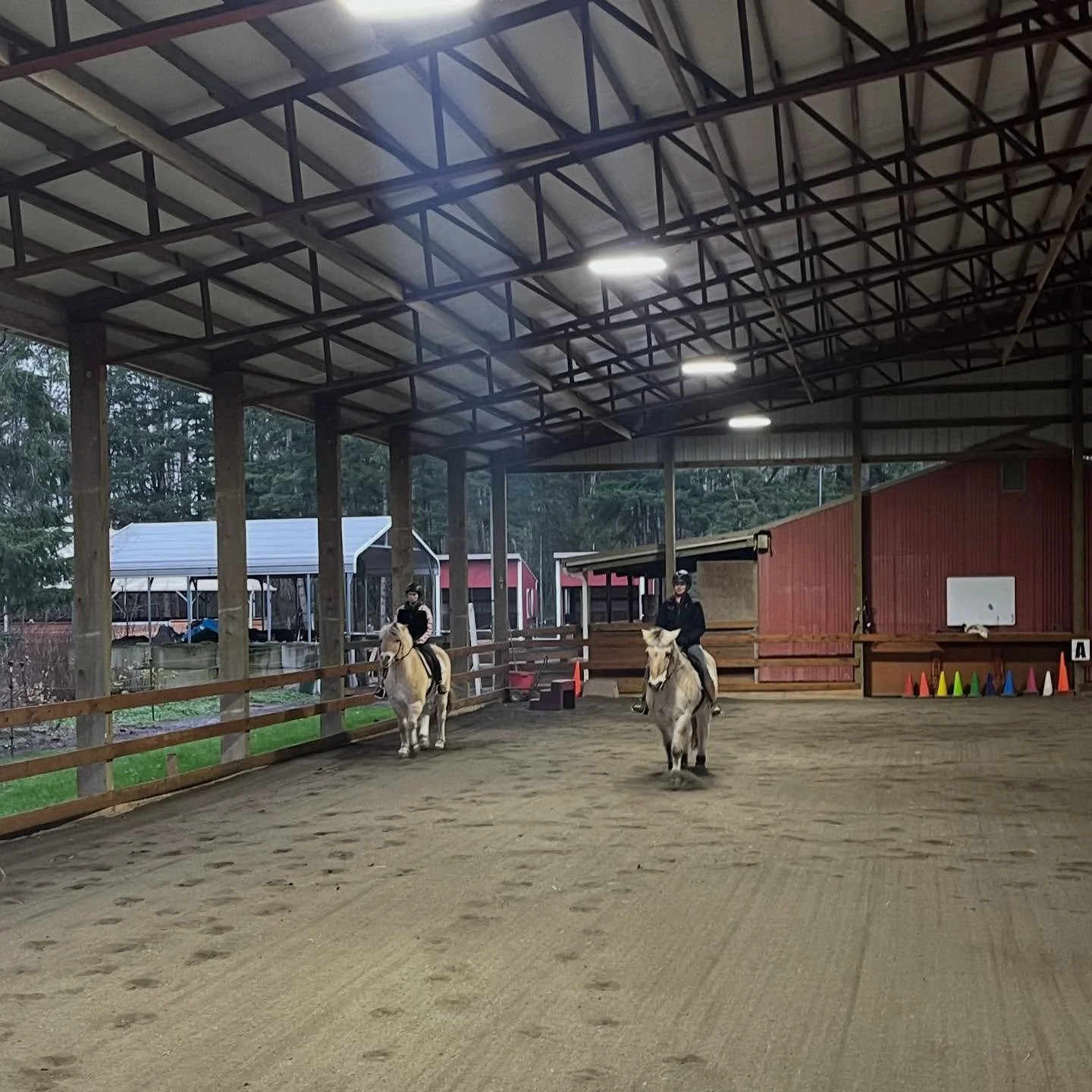 Horses exercising in our lovely covered arena, and of course, resting in their cozy shelters.